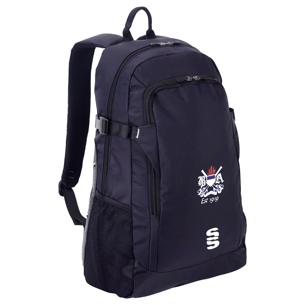 A over shoulder quality backpack made of polyester material with our Surridge SS logo.